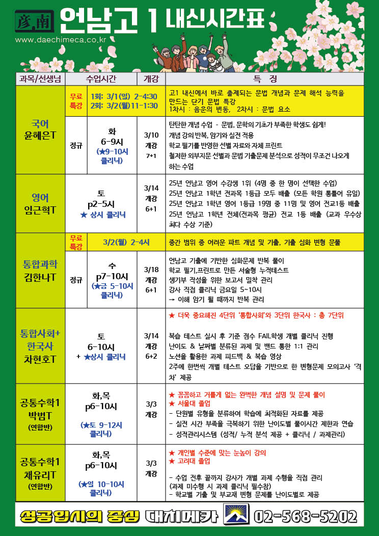 [2026년] 언남고1 내신시간표