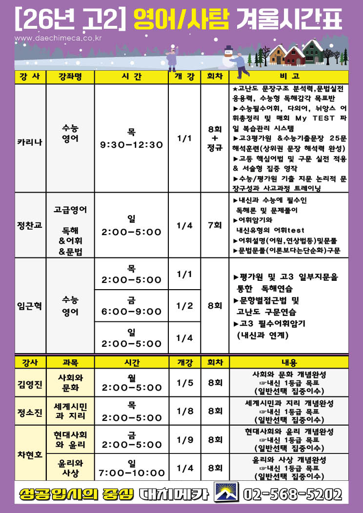 고2시간표