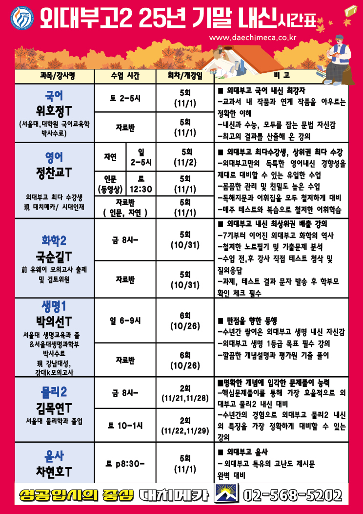 [2025년] 외대부고2 2학기 기말 내신시간표