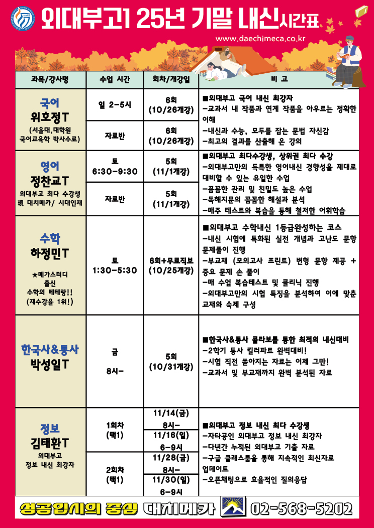 [2025년] 외대부고1 2학기 기말 내신시간표