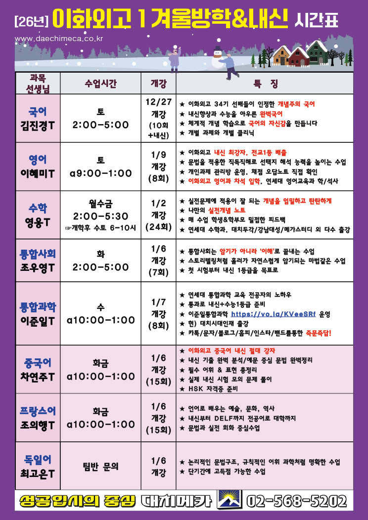 [2026년] 이화외고 1 겨울방학&내신시간표