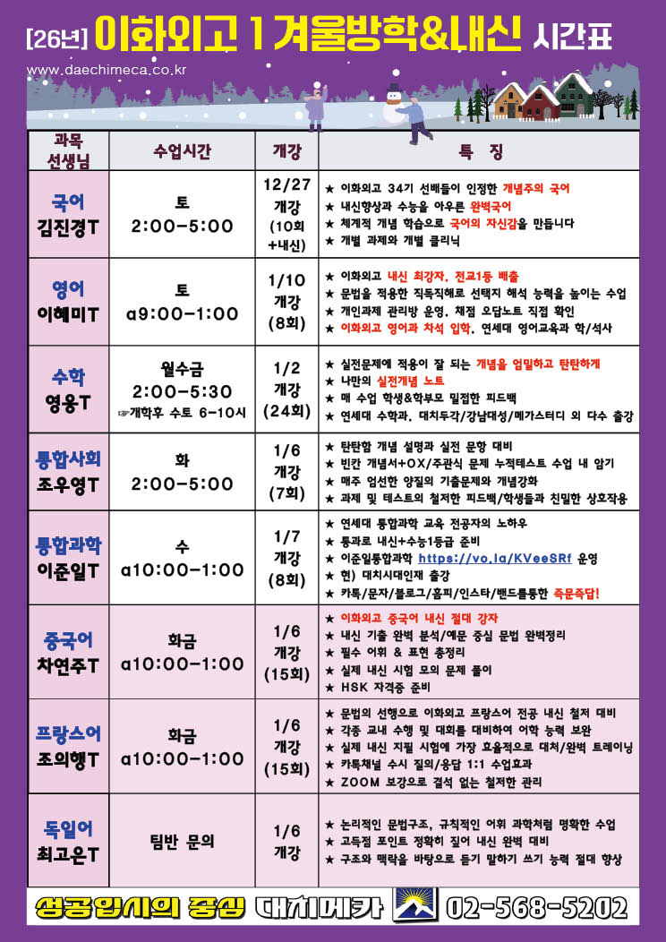 [2026년] 이화외고1 겨울&내신시간표