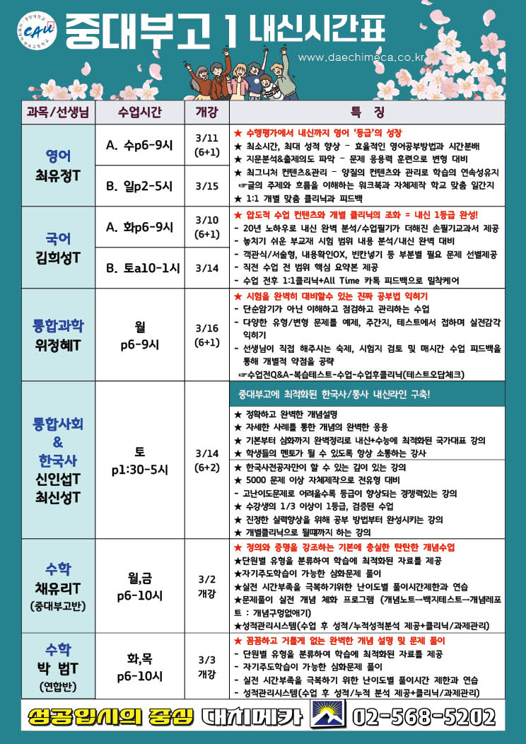 [2026년] 중대부고1 내신시간표
