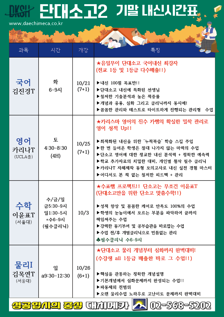 [2025년] 단대소고2 2학기 기말 내신시간표