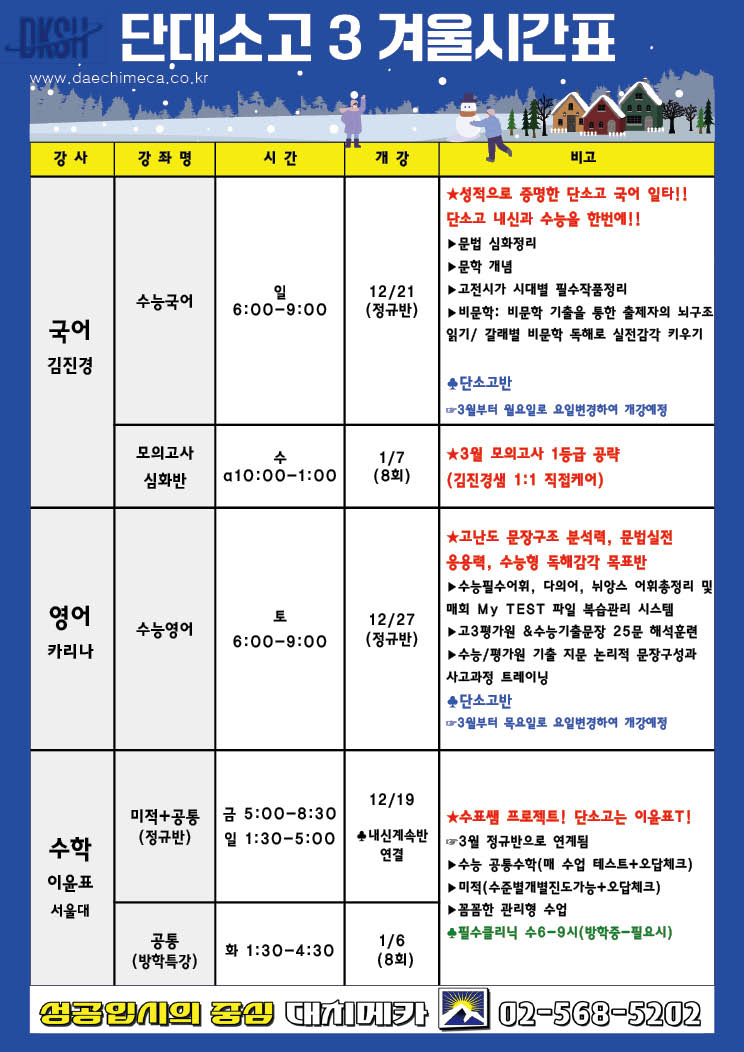 [26년 고3]단대소고3 시간표